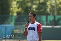 金刺選手は、「これまで、苦しい体験や怪我をたくさんして親やチームメイト、そして指導者に大変迷惑をかけてしまったので、この夏、自分が活躍してこの恩をプレーで絶対に返せるように頑張ります。そして、今、後ろにいる3年生。これまで苦しい場面や苦しい状況になっても、お互いに助け合ってここまでやってこれたので、チームみんなで甲子園に行けるように頑張りたいと思います。応援よろしくお願いします。」と語った。