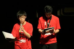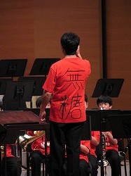 10分の休憩を挟み雰囲気が和んだところで第2部が始まり、赤いTシャツを着た中学生部員(指揮者の立石先生は背中に「無糖」が…)による「HERO