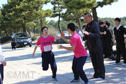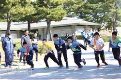 生徒たちは声を掛け合ったり、並走したりと、良い雰囲気で賑やかに行事が進みました。海の公園へ地域奉仕活動で来た高校生や、先生方も飛び入りで参加し、大変盛り上がりました。