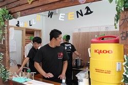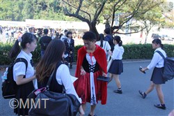 横校祭二日目は、日曜ということもあってか昨日より多くお客さんが来たように感じます。発表や接客に慣れてきたようで、初日よりスムーズに行われていました。保護者が開いている屋台周辺は今日も大盛況で、昼前後には行列ができていました。15時に終了したあと、後夜祭が行われ、最後は応援歌で盛り上がりました。