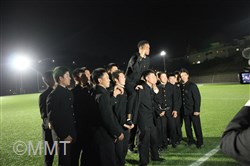 2018年10月25日(木)プロ野球新人選択会議(ドラフト会議)が行われました。横浜高校からは、 万波 中正 選手がプロ志望届を提出していました。 18時34分頃、別室でドラフト会議の中継を見ていた万波選手が北海道日本ハムファイターズから4巡目に指名されました。その後、会見会場の会議室に移動し、高校3年生の野球部の仲間が見守る中、記者会見が始まりました。 まず、葛校長が「横浜高校として、万波くんの才能は大きな可能性があると思っています。この先大きく開花していくと信じて、送り出したいと思います。」と話しました。 万波選手は、指名された瞬間の気持ちを、「ほっとして、胸をなでおろしました。」と話し、「ようやくスタートライン立てたと思うので、これで満足せず頑張っていきたいです。」と挨拶をしました。 日本ハムファイターズの印象を「若い選手が多く、生え抜きの選手が多い印象なので、自分もその先輩たちに続いていけたらと思います。」と語りました。 自分のプレーのセールスポイントはという質問に対して、「当たれば大きく飛ぶのが自分の持ち味だと思います。技術面ではまだプロでは通用しないと思うので、元気を出してグラウンドで声を出していきたいです。」と話しました。 また、対戦したい選手を聞かれると、横浜高校の先輩である藤平投手と松坂投手を挙げ、そして、「球団の顔となれる選手になりたいです。」と力強く語りました。 写真撮影に応じた後、野球部の仲間が待つ第一グラウンドに移動し、胴上げで祝福されました。 |