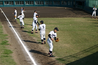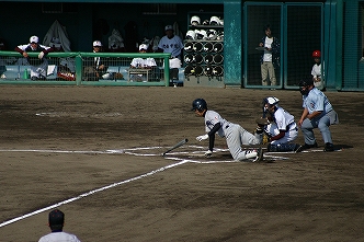| 3回表: | 8番、9番と二者連続三振に打ち取られるが、1番白井が足を活かし内野安打とするが、後続を断たれて無得点に終わる。 |