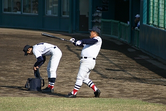 | 1回表: | ベスト4進出を目指して臨む関東大会2回戦は、茨城の強豪、常総学園を迎え撃つ。先頭打者の白井は、サードゴロで倒れるが、高濱がレフト前ヒットで出塁。しかし、その後、三振とセンターフライでこの回の攻撃が終わる。 |