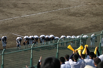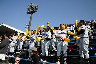 | 10回裏: | この回はどうしても抑えたい横浜の守備は、8番、9番打者をサードゴロ、ショートゴロに抑えるが、1番打者に三塁線ぎりぎりのヒットを打たれると、2つのファーボールで満塁のピンチ。しかし、最後は粘る常総学院をセンターフライに打ち取りゲームセット。強豪常総学院を相手に苦しい試合を制した横浜は、ベスト4進出を決め、選抜甲子園出場をぐっと近づけた。 |
