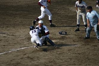 | 7回表: | 2アウトから9番橋本がセンター前ヒットで出塁。続く白井が右翼線に意地のヒットを放ち、1点を返す。その後、高濱もタイムリーを放ち1点差に詰め寄った。 |