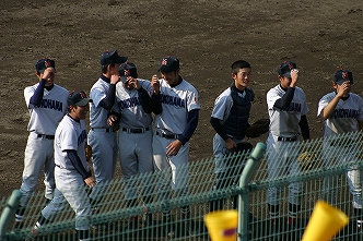 | 8回表: | 4番福田はピッチャーゴロ、岡田はセカンドゴロに倒れるが、越前がセンター前ヒットで出塁する。続く飯田がライト前ヒットを放つが、浦川がサードゴロに倒れ、最終回に望みをつなぐ。 |