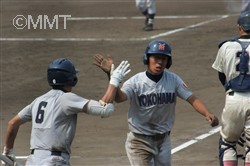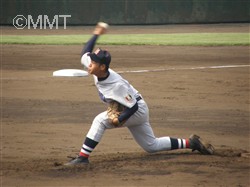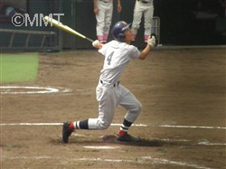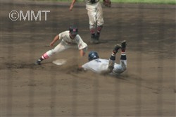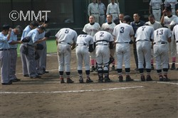 なんとかしてまず追いつきたい最終回。水澤は空振り三振。徳井のセーフティバントがピッチャーハーフフライとなり二死。野並は四球を選び二死から出塁。しかし中原はレフトフライに倒れゲームセット。甲子園センバツ出場の夢は絶たれた。 |
