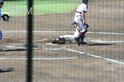 2回表 先頭打者はショート高橋のファインプレーで一死とする。しかし8番柳にライト越えの二塁打を打たれると、9番打者に犠打を決められ、一回に続き三塁まで進塁を許す。するとパスボールで1点を先制される。1番打者にライト前ヒットを打たれるが、キャッチャー佐藤佑が盗塁を刺し三死とする。