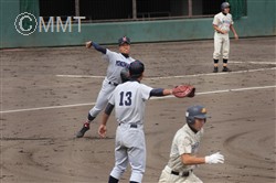 2回表 6番田原のショートゴロと7番小野のセンターフライで二死となるも、8番柳がレフト前、9番佐藤はライト前へヒットを放ち二死一、三塁とする。しかし、1番長谷川が空振り三振となり、この回も無得点に終わる。