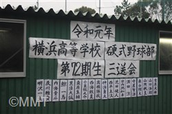 式次第1.送別試合 2.記念撮影 3.葛校長挨拶 4.高山監督代行からの選手紹介 5.三年生の挨拶 6.在校生代表の挨拶 7.在校生から記念品の贈呈 | ||||||||||||||||||||||||||||||||||||||||||||
