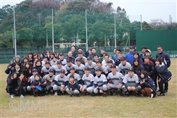 3年生は泥だらけになりながらも、最後の試合を楽しんでいました。 試合終了後、記念撮影をした後に、セレモニーが行われました。 葛校長は「人生は今日の試合のように1点差ということが多いです。もうちょっと頑張れば何とかなる、こうしたらよかったかなということがあります。こういうことも踏まえて、これからも頑張ってほしいと思います。」と選手を激励しました。 高山監督代行が、メッセージを添えながら3年生一人一人を紹介し、レギュラーの頑張りや、支えた選手たちを称えました。 その後、3年生一人一人が挨拶をしました。卒業後の進路などを報告し、ここまでの支えに感謝をし、次のステージでの活躍を力強く宣言しました。 |