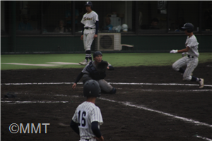 1番 小野 二塁打 2番 池田 中二塁打 二塁手の返球が逸れて@小野 生還 無死三塁 3番 川上 右飛 4番 江坂 中三塁適時打 A池田生還 5番 下谷 中犠飛 C江坂 生還 6番 千島 一飛
