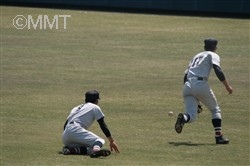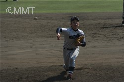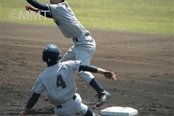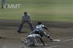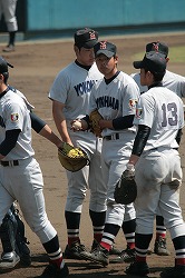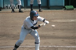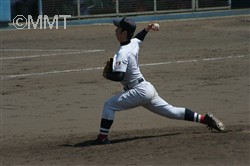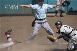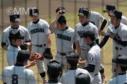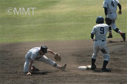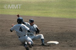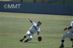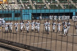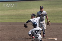 松元は初球を打ち、セカンドフライに倒れ一死。近江も初球を打ち、センターフライ。わずか2球で二死となるが、大石は四球を選び出塁。しかし中原はファーストフライに倒れ追加点ならず。 ◇ 9回裏 2点のリードで迎えた最終回。近江は先頭にセンター前ヒットを許し、続く打者をセカンドゴロに抑え、併殺を狙う。しかし、二塁手小川からの送球が乱れ、走者が入れ替わる形となり一死一塁。続く打者もセカンドゴロで併殺を狙うも、一塁は間に合わず二死一塁。そして最後の打者をファーストゴロに抑えてゲームセット。2回戦へと駒を進めた。 |