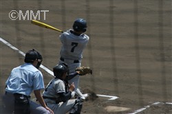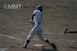 小田はショートゴロに倒れるが、新井はライト線への二塁打で出塁。長谷川の三振の後、松元が右中間への二塁打を打ち、追加点を入れる。相手の捕手の後退で、二塁走者松元が三塁へ。水澤は四球を選び二死一、三塁。しかし続く大石はセカンドゴロに倒れ、二者残塁。