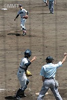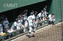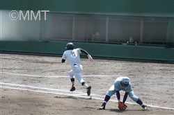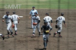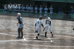 先頭の四番無江はショートゴロに倒れるが、続く新井がセンターの頭を超える二塁打で出塁する。小田も四球を選び、一死一、二塁で松元が打席へ。松本はライトフライを打ち、二塁走者新井が三塁へ。二死一、三塁で中岡はセンター前へ落ちるヒットで1人生還。尚も二死一、二塁のチャンスだったが、中原はセンターフライに倒れた。