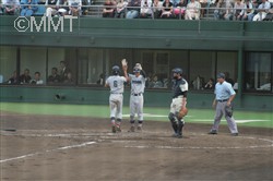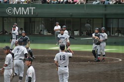 松元は四球で出塁し、前の打席で本塁打を打っている小田へ。すると、ワイルドピッチが2つ続き無死三塁となる。小田はセンターフライを打ち、三塁走者松元が生還。中原はファーストライナーに倒れ、二死。ここで代打金原が今大会初打席へ。ここは四球を選び二死からの出塁。しかし大石はショートゴロに倒れた。