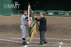 県高野連会長より賞状と優勝旗。 朝日新聞社、神奈川局長から優勝杯。 神奈川新聞社運動部長から盾がそれぞれ贈られた。 神奈川県高野連会長からの挨拶では、「横浜はさすが王者だ。」との評をいただいた。 |