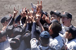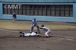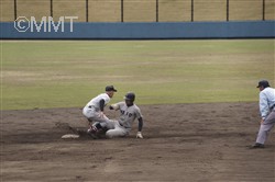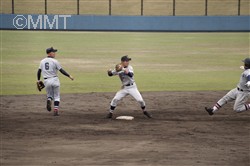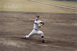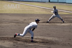 12回表 先頭をショートゴロに抑えるが続く打者にレフト前ヒットを許す。その後送りバントを決められ得点圏に走者を置かれピンチを迎える。続く打者はショートゴロ。これを小林が弾き慌てて一塁へ送球するがこれが悪送球となり二塁走者が生還。痛い1点を奪われる。すると続く1番打者にライトへの三塁打を打たれこの回2失点目。ここでマウンドには一年生の山内が上がる。山内は打者一人に対して三振に取った。 ◇ 12回裏 点を奪われ後がなくなり何とか追いつきたいこの回。先頭井上はライトフライに倒れ一死。そして続く代打中岡、代打丸山は連続三振に倒れ試合終了。齋藤の14奪三振もむなしく、夏のシード権を獲得出来ずに春の県大会を終了した。 |