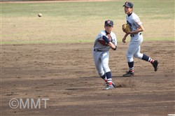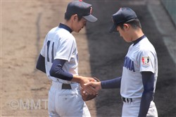 代打に村田が入る。村田はサードフライファウルに倒れる。7番高井は死球で出塁する。8番伊藤は打ち返すもセンターフライに倒れる。9番戸掘に代わり須澤が打席に入る。須澤は初球をたたき投手強襲で二死一、二塁とし、1番浅間に打順は戻る。しかし浅間はセンターフライに倒れる。 ◇ 9回裏 最終回、ここまで0点で抑えてきた。この回もマウンドには伊藤が登る。伊藤は先頭打者をセンターフライ、6番を空振り三振、7番をサードゴロに打ち取り、試合終了。2-0で勝利し関東大会出場を決めた。 |