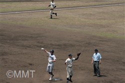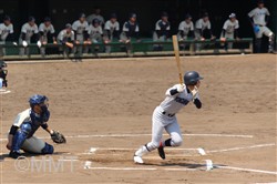 9番戸堀は空振り三振、1番浅間はセカンドゴロと二死まで簡単に取られるも、2番根本は四球で出塁する。しかし、3番川口は空振り三振に打ち取られ走者を動かせない。