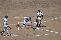 2回表 先頭打者渡辺はショートへの内野安打で出塁するも、盗塁に失敗する。6番小野は空振り三振に倒れ、7番高井はセンター前ヒットで出塁する。しかし8番春日井は投手ゴロに打ち取られて、走者を進められない。