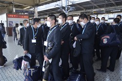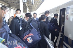 選手達は15時19分発の新幹線に乗り込み、見送りの父母たちに手を振って新大阪へ向かった。