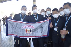 到着後、父母や部員たちが見守る中、神奈川県高野連主催の野球部の出発式が始まった。神奈川県高野連専務理事 名塚氏は「期待はプレッシャーではなく応援である。気持ちよくグラウンドに出て、敬意、マナーを守った全力プレーを期待している。」と、葛学校長は「マナーのよい、記憶に残るプレーで神奈川の野球をしてほしい。」と激励した。