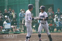 ‚Q‰ñ•\ @4”ԑŎ҂̃T[ƒh‚Ö‚Ì‹—ó‚ȑŋ…‚̓T[ƒhŽRú±‚̃Oƒ‰ƒu‚ð‚Í‚¶‚«‹Pƒqƒbƒg‚Åo—Û‚ð‹–‚·‚àA‘±‚5”Ô‘ÅŽÒ‚ðƒZƒ“ƒ^[ƒtƒ‰ƒC‚É—}‚¦‚éB6”Ô‘ÅŽÒ‚É‘—‚èƒoƒ“ƒg‚ðŒˆ‚ß‚ç‚êA“ñŽ€“ñ—Û‚Æ‚³‚ê‚邪A7”Ô‘ÅŽÒ‚ðƒT[ƒhƒSƒ‚ɑł¿Žæ‚éB‚±‚̉ñ“¾“_Œ—‚Éi‚Ü‚ê‚邪0“_‚Å—}‚¦‚½B