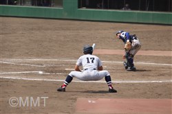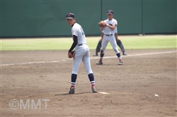 この回先頭の長南はセンターフライに倒れる。ここで横浜は5番木下に代わり、大手が打席に入るも、大手はセカンドフライに打ち取られる。ここで相手はピッチャーを代える。6番万波は四球を選び、二死ながらも出塁する。 ここでまた、相手は投手を交代する。 一塁ランナー万波は盗塁を決め、二死二塁と得点圏にランナーを置く。7番角田は四球を選び、二死二塁となるも、8番小泉はセカンドフライに倒れ、この回無失点に終わる。8‐2のまま最終回の守備を迎える。 ◇ 9回裏 この回マウンドに万波が上がる。万波が先頭をショートゴロに打ち取る。6番の代打をキャッチャーフライに抑えると、最後は7番の代打を空振り三振に抑える。8‐2で勝利し、四回戦に駒を進めた。 |