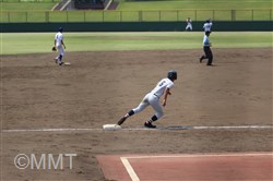 先頭のが初球からセーフティーバントを成功させるも、1番の山崎がサードゴロに倒れる。ゲッツー崩れで山アは出塁する。初球から盗塁を仕掛けると、更に三盗も成功させ一気に一死三塁となる。2番の河原木は四球で出塁し、盗塁を決めて、一死二三塁になる。3番齊藤のショートゴロの間にランナー生還し、1点を加える。4番の長南は空振り三振に倒れ、この回は、1点で攻撃を終える。