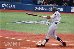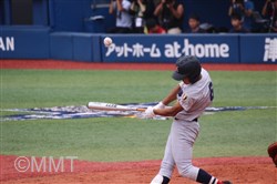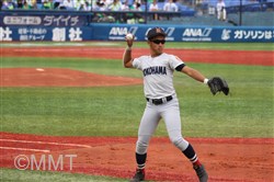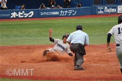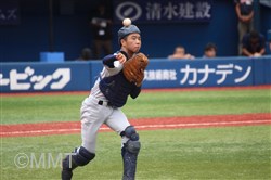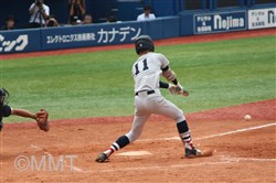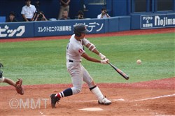 先頭の角田はセンターフライに倒れるも、8番板川はセンター前ヒットで出塁する。9番の遠藤は良い当たりもセンターフライ、1番の小泉がセカンドフライに倒れる。この回ヒットで出塁するも無得点に終わる。