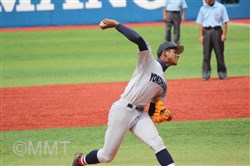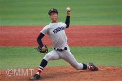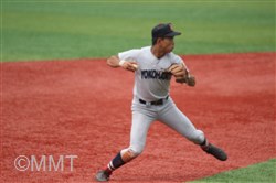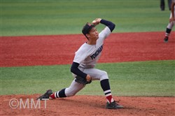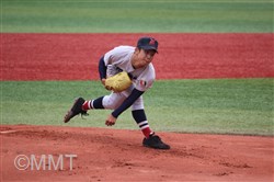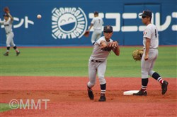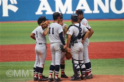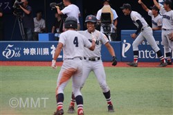 この回先頭の河原木はショートゴロ、7番角田はサードゴロ、8番及川はセカンドゴロと三者凡退に終わる。 ◇ 9回表 この回相手は先頭に代打を出す。及川は代打をサードゴロに打ち取る。ここで8番の代打に二塁打を打たれ、一死二塁と得点圏にランナーを背負う。9番にセンター前ヒットを許し、一死一、三塁とピンチが広がる。1番の代打にレフト前へタイムリーヒットを打たれ、1点を返される。 2番にライト前ヒットを許し、一死満塁とピンチを招く。ここでピッチャー及川に代わり万波がマウンドに上がる。 万波は3番をレフトフライに打ちとる。二死満塁の場面で万波はボークで1点を失う。二死二、三塁に代わり、4番にライト前へ2点タイムリーを打たれ2点点を返され、1点差に相手が迫ってくる。しかし最後はライトフライに打ち取り試合終了。 何とか逃げ切って、4年連続の決勝進出を決めた。甲子園まであと1勝!! |