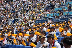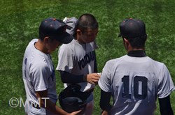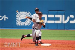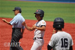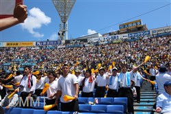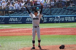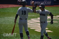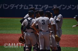 最終回の攻撃となるか。先頭の長南は空振り三振、7番角田はショートゴロ、8番板川はセンターフライと三者凡退で終わる。 ◇ 9回表 無失点で終わらせたい9回裏の守備にナインがつく。 板川は先頭にセンターフェンス直撃の二塁打、5番にレフトフェンス直撃のヒットを打たれ、1点を返されたところでここまで投げてきたエース板川から万波に代わる。 万波は6番に四球を与えると、ワイルドピッチで進塁を許し無死二三塁のピンチを迎える。流れを断ち切れず、7番にライトオーバーの二塁打を許し、さらに2点を返される。 ここで、及川がマウンドへ向かう。及川は、8番をファーストライナー、9番に代打が送られるも空振り三振に打ち取り、これで二死となる。1番の当たりはサードライナーとなり、ゲームセット。最後は苦しんだが及川が踏ん張り、7‐3で勝利を決めた。 横浜は神奈川三連覇を達成した。次は、100回の記念大会で沸く甲子園の優勝旗を神奈川に持ち帰ってほしい。 |