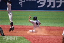 先頭の長南はライト前ヒットで出塁する。7番角田は送りバントを決め、8番板川のセカンドゴロの間に長南は三塁へ進む。9番遠藤のセンター前へのタイムリーヒットで6点目が入る。 さらに遠藤は、今日3盗塁目となる二盗を決める。1番小泉はハーフスイングを取られて5回の攻撃は終了となる。
