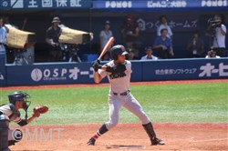 黒須に代わり、今大会スタメンは一度ながら、7割5分のハイアベレージを記録しているスーパールーキーの度会が打席に入る。度会はセンター前へ抜ける当たりを打ち、代打の仕事を確実にこなした。6番長南、7番角田は共に空振り三振に倒れる。8番板川はレフト前へのテキサスヒットで出塁し、 二死一三塁になる。しかし遠藤はショートフライに打ち取られて三死。チャンスを作るも、得点につながらなかった。