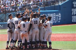試合前 昨日までの暴風雨から一転して、快晴の横浜スタジアムで決勝が始まろうとしている。30年振りに決勝の舞台へとやって来た鎌倉学園。 記念大 会に相応しい戦いとなった。昨秋は同校にコールド負けを喫し選抜を逃したが、今回は快勝し甲子園の土を踏みたい。 | ||||||||||||||||||||||||||||||||||||||||||||||||||||||||||||||||||||||||||||||||||||||||||||||||||||||||||
