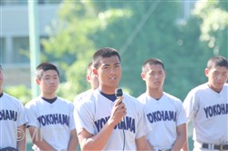 続いて高山コーチがメンバーに入れなかった3年生を紹介し、選手1人1人が挨拶した。多くの選手が「辛いこと、悔しいことが多かったが、この先にそれを生かしていきたい」と話し、この夏の全力応援を誓った。