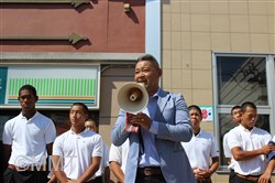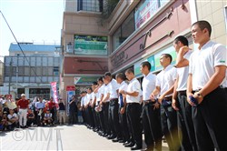 学校を出発した横浜高校野球部の選手達は、まず、14時25分頃から能見台駅前で行われた能見台商店街による壮行会に臨んだ。