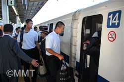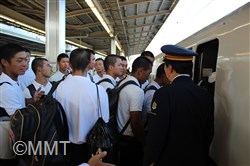 選手達は16時39分発ののぞみに乗り込み、父母たちの「がんばれ!」という声に見送られて新大阪へ向かった。
