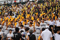 先頭の板川はセンター前に落ちるポテンヒットで出塁するも、牽制でアウトとなる。9番遠藤はファーストライナー、1番山アはセンターフライに倒れる。この回は3人で攻撃が終わる。