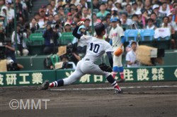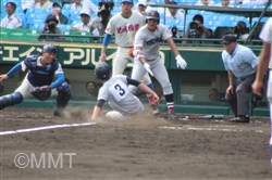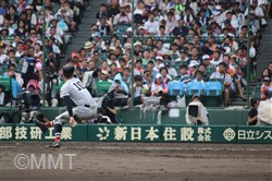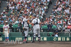 先頭の万波は良い当たりを放つもセンターライナーに打ち取られる。5番内海はファーストゴロ、6番角田はショートゴロに倒れ、この回は三者凡退に終わる。8−4と4点リードのまま最終回へ。 ◇ 9回裏 黒須は先頭に死球、1番に四球を与えるも、2番をレフトフライに打ち取る。ワイルドピッチで一死二、三塁とピンチを迎える。さらに、3番に四球を与え、満塁となる。すると4番にサードの内野安打を打たれ1点を追加され、尚も満塁が続く。 5番をファーストのファールフライに打ち取る。6番に死球を与え押し出しで1点を取られ2点差まで迫られる。 7番をフルカウントから空振り三振に抑え、試合終了。何とか逃げ切って昨年の王者を倒し、5年ぶりに3回戦進出を決めた。 |
