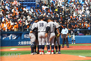7番 四球 8番 一義打 無死二塁 9番 右翼線二塁適時打 F生還 1番 一ゴロ 二死三塁 投手交代 #11山脇→#18片山 2番 見逃し三振